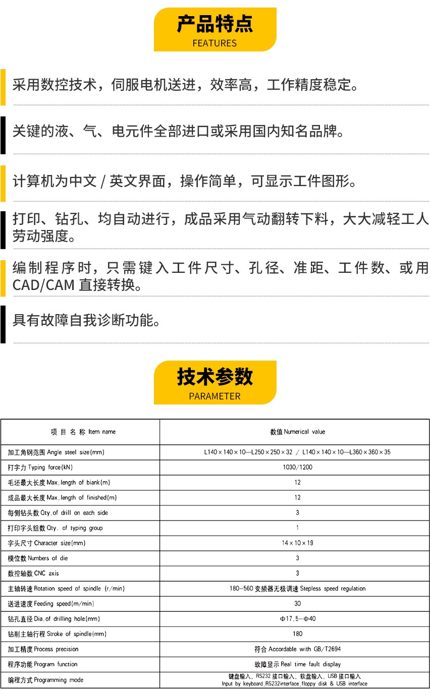 本生產線適用于電力、通訊、鋼結構等領域規格較大的角鋼型材的打鋼印、制孔作業。